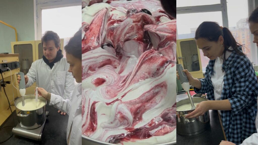 5 грудня на кафедрі технології молока і молочних продуктів відбувся довгоочікуваний майстер-клас від засновниці сімейної майстерні італійського джелато та сорбетів Family Gelato — пані Тетяни Савенко. В межах дисципліни “Технології незбираномолочних продуктів та морозива” здобувачі груп МО-3-2 та МО-3-3 мали змогу поринути у світ створення італійського джелато «Лохина-дорблю».