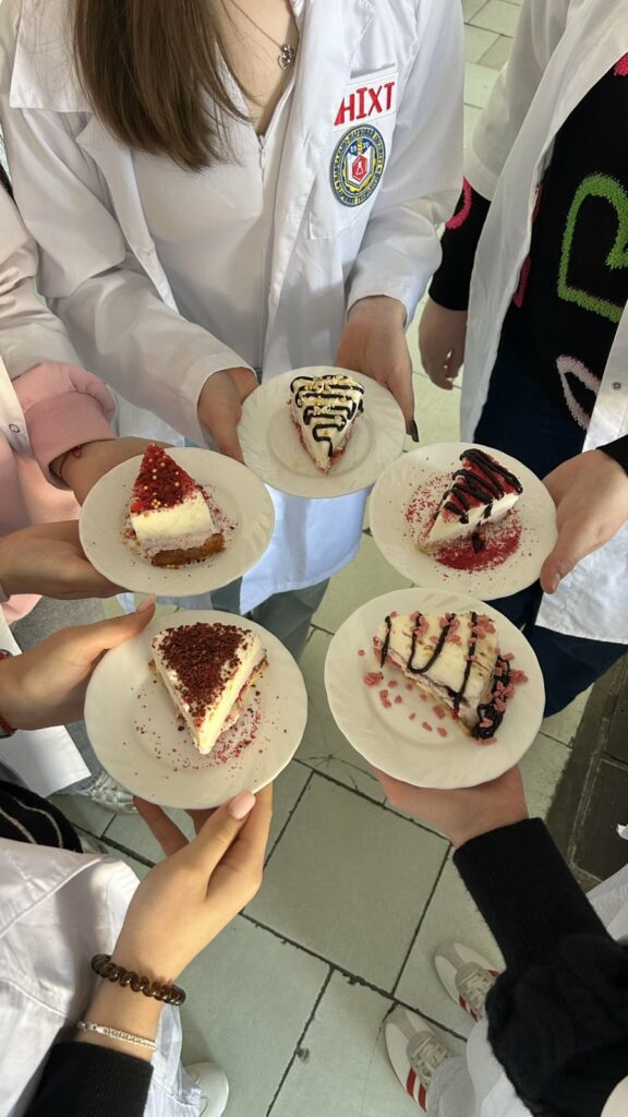 Під час лабораторної роботи студенти мали змогу відчути себе справжніми технологами та створили складний десерт — торт із морозива. Для виготовлення виробу було використано вже готове молочне морозиво, а також різноманітні смакові інгредієнти, що дозволило здобувачам проявити креативність та індивідуальний підхід.