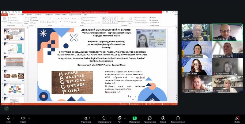 16 грудня вперше в університеті відбувся захист міжкафедральної комплексної кваліфікаційної роботи магістрантами денної форми освітніх програм «Технології зберігання, консервування та переробки м’яса» Навчально-наукового інституту харчових технологій НУХТ і «Промислові та крафтові технології м’яса та м’ясопродуктів» факультету переробних і харчових виробництв Державного біотехнологічного університету, який став прикладом результативної академічної співпраці у сфері харчових технологій нашого вишу з Державним біотехнологічним університетом.