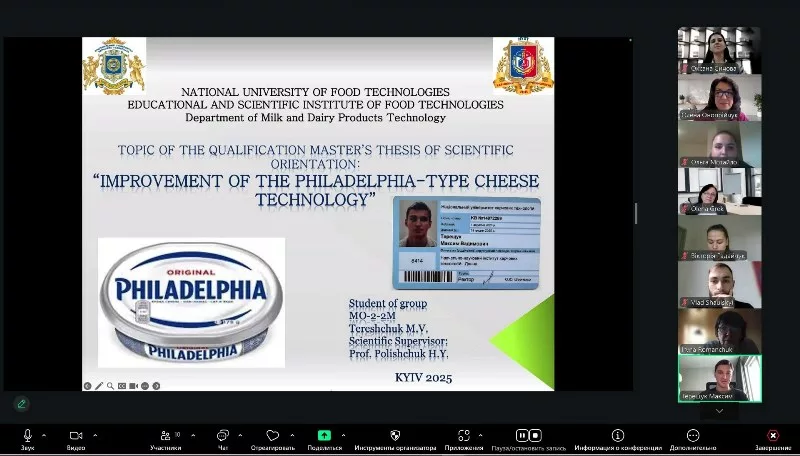 На кафедрі технології молока і молочних продуктів з 10 по 22 грудня 2025 року з використанням сучасних інформаційно-комунікативних технологій відбулися успішні захисти кваліфікаційних робіт здобувачами освітнього ступеня «Магістр» денної форми здобуття освіти за спеціальністю 181 «Харчові технології» освітньо-професійною програмою «Технології зберігання, консервування та переробки молока».